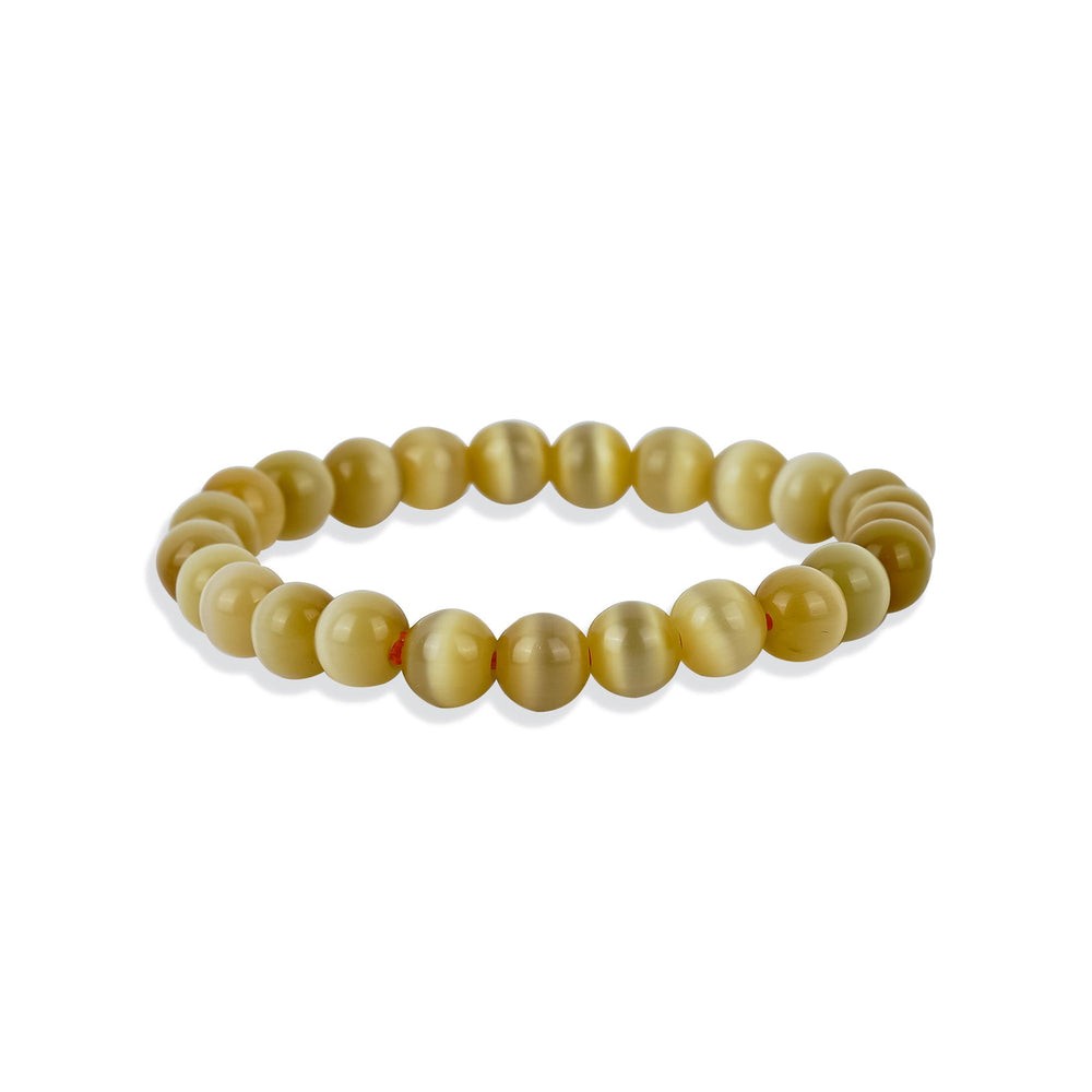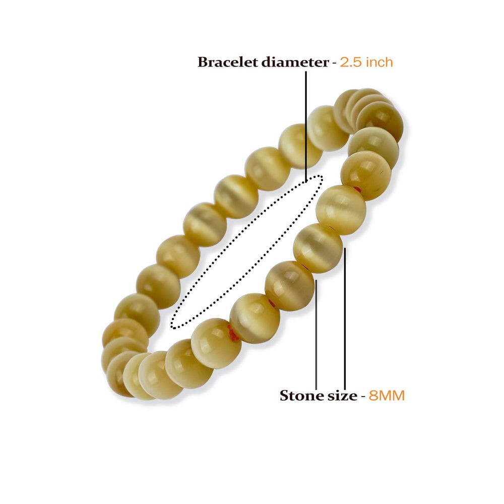 Cat's Eye Stretchable Bracelet. Best Quality Crystal Beads. Ready to wear, already Aura-synchronized and activated for Best Results. BENEFITS- Cat's eye is sometimes referred to as the "stone of ambition" and is believed to help bring success and prosperity in business and career matters. Sillimanite cat's eye is said to enhance intuition and spiritual awareness, as well as helping to balance the chakras. It is thought to promote peace and calmness, as well as helping to release negative emotions. Get the best AAA quantity crystal bracelets with Gemsmantra.