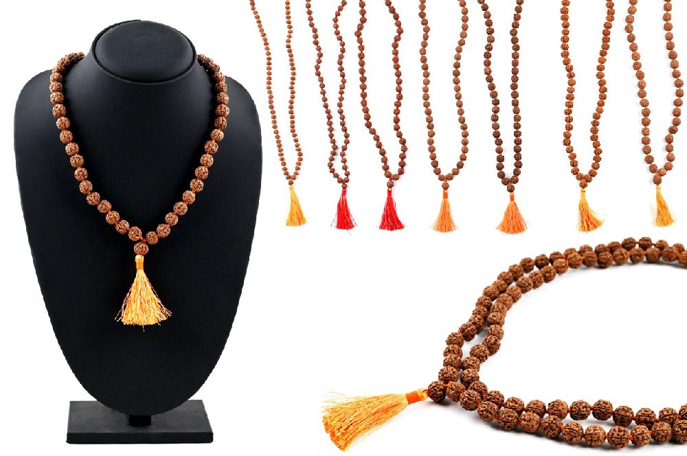 Panchmukhi Rudraksha Chikna beads Japa mala is prepared from fine quality hard and smooth beads of five mukhi from Indonesia with traditional knots between the beads and a central sumeru with tassel. It is the most popular choice for a Japa mala and it suitable for chanting mantras of all Gods and Goddess. Five mukhi is embodiment of Rudra Kalagni form of Lord Shiva who symbolises transformation and regeneration. It is ruled by planet Jupiter and hence also called Guru mala. This highly auspicious mala is for those who wish to align to their higher selves meaning Upa Guru. This mala is strung as per RRCT (Rudraksha Ratna Chakra Therapy) where each bead is meticulously oriented in clockwise direction with the combined charge emanating from the sumeru bead to achieve the full potency of the mala. Japa malas are usually made of 108+1 beads where 108 represent the universe and spiritual completeness, while the +1 Guru bead honours the spiritual guide.
